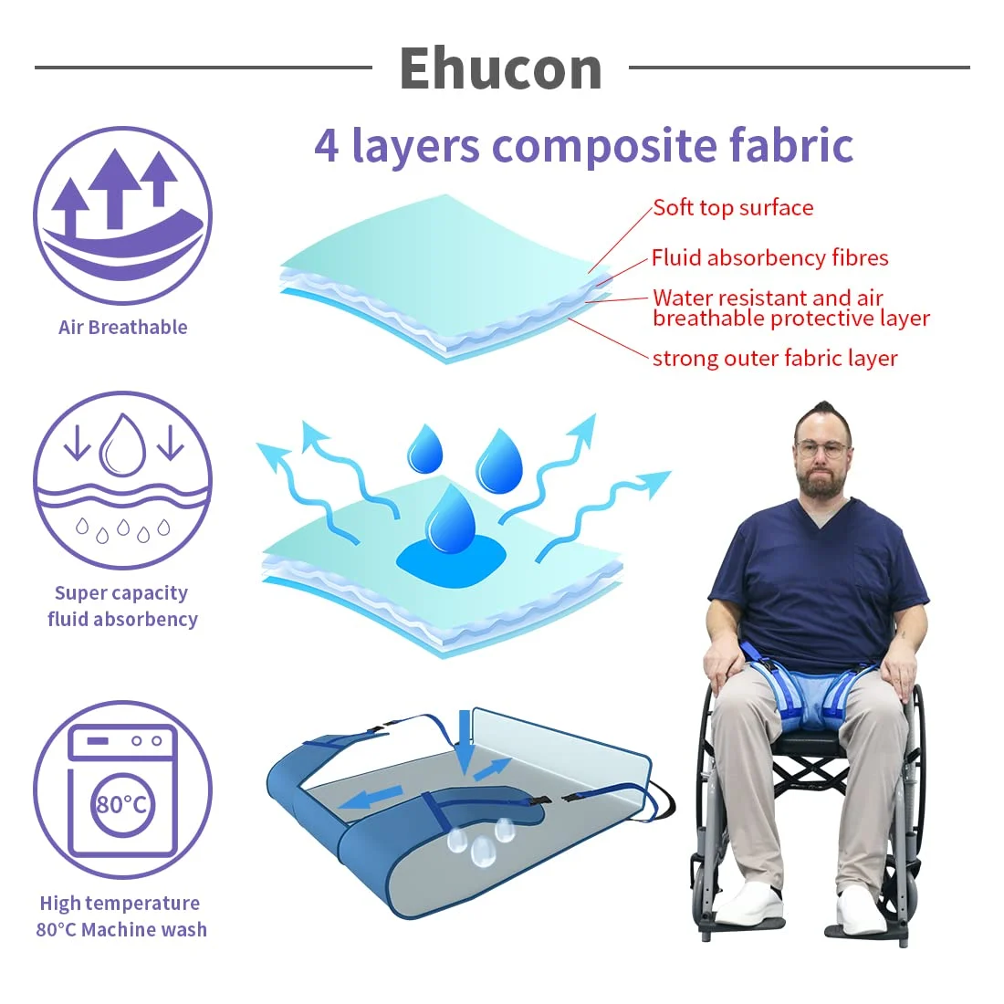 - Portable – Waterproof and extra fluid absorbent to cover the whole seating area. It is great to be used on most wheel chairs and geriatric furnitures and incontinence washable.Multi-function- This incontinence pad has high fluid absorbency level of properties as an incontinence pad for the person in use. It is a pelvic holder as well to prevent the client from falling or sliding off.