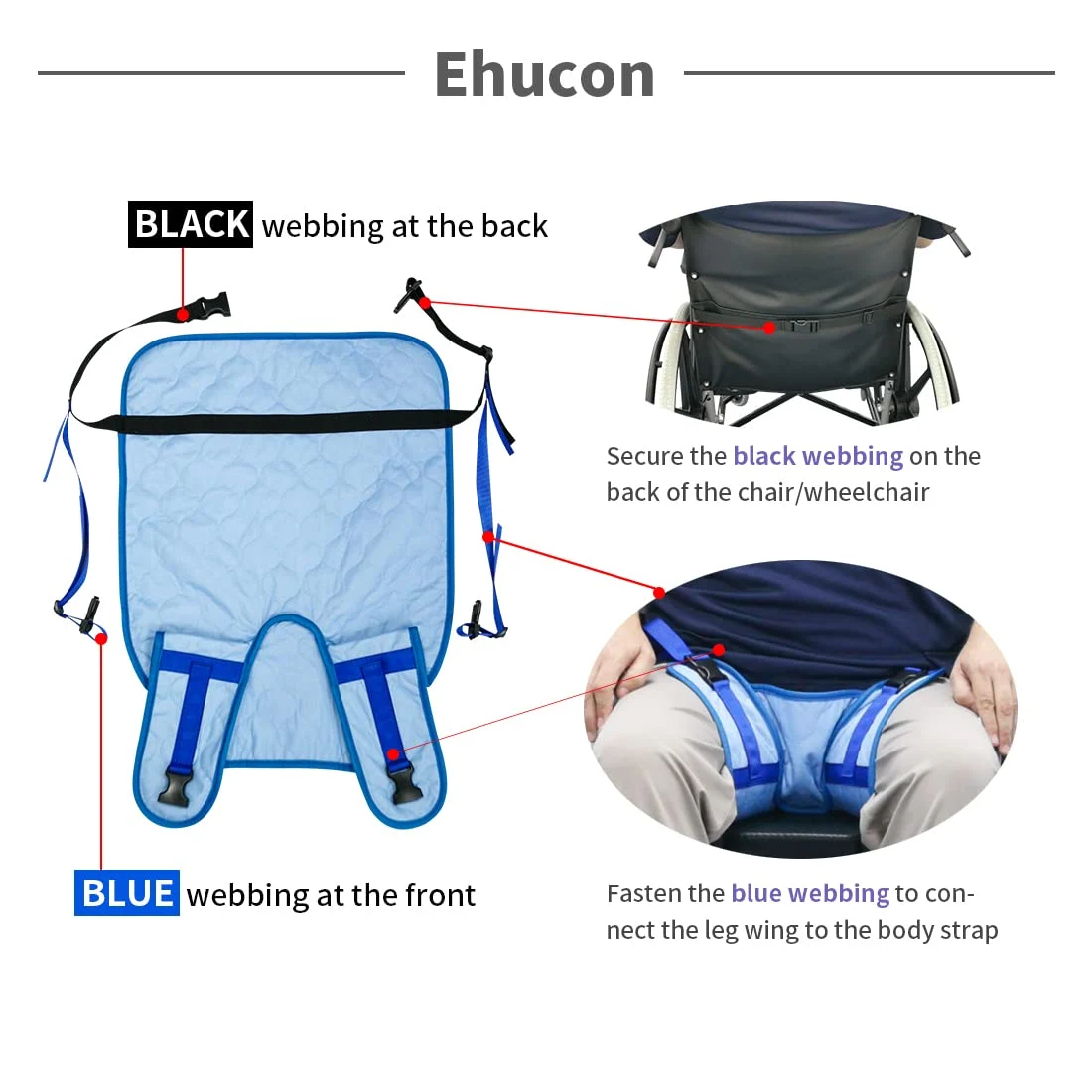 - Easy to wear / easy to detach- Ehucon wheelchair restraint pelvic holder has three quick fastening buckles and there are color coded adjustable straps to allow a care giver to wear or to remove the wheelchair seatbelt easily, the long adjustable straps/harness fit most of the body size of an adult, even it is fit for a slim person to use with the harness is adjustable.