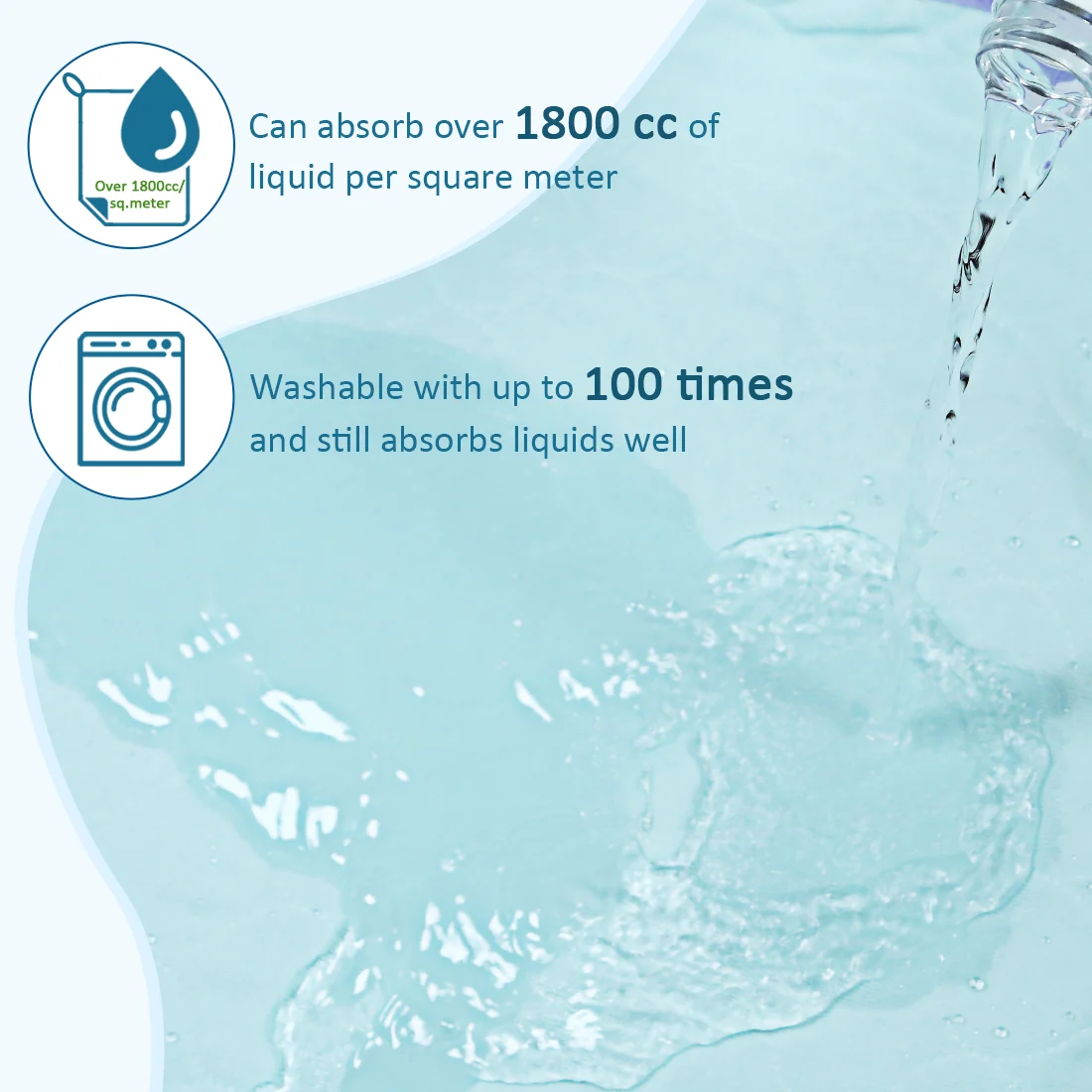 –Machine washable & reusable -Durable backing. Washer and dryer friendly. High temperature up to 80 degrees Celsius (176 degrees F), washable with up to 100 washes, these provide an environmentally friendly and economical option to disposable solutions.